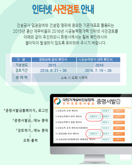 [대한기계설비건설협회] (재무비율·시평액) 인터넷 사전검토 안내